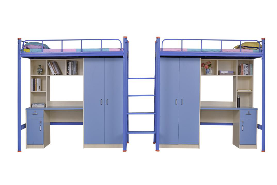 東莞振華家具學(xué)生宿舍組合床,采用優(yōu)質(zhì)的冷軋鋼打造,立柱采用中空異型材,內(nèi)外皆可酸洗磷化,不易生銹??凼芥溄痈永喂蹋鹧b方便。而我們的學(xué)生宿舍組合床由床、書(shū)桌、衣柜、書(shū)柜和梯子等組成,不僅大大的節(jié)省胃宿舍空間的利用,還使宿舍看起來(lái)更加整潔美觀舒適。